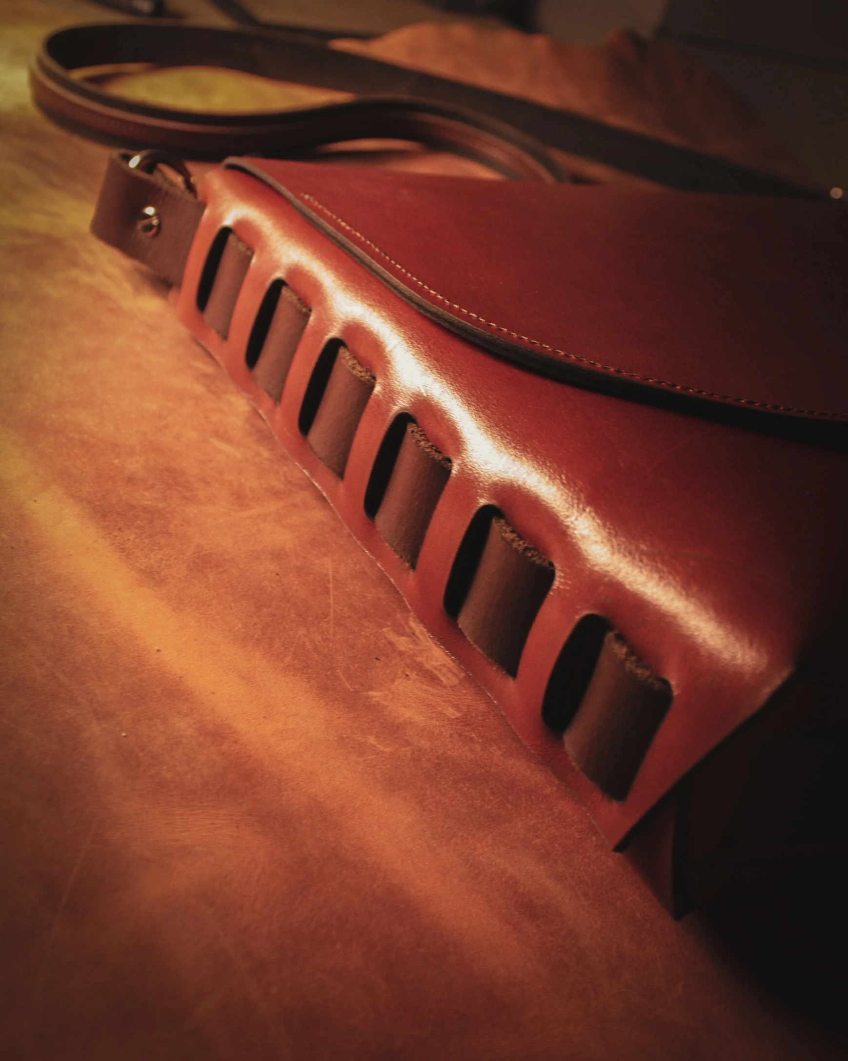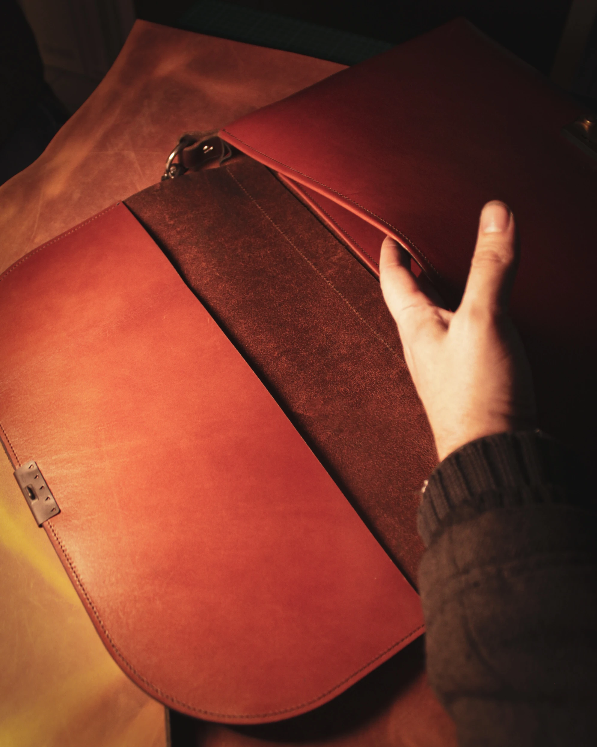 Σχεδιασμένη με γνώμονα τη λογική και την πρακτικότητα, το ρυθμιζόμενο λουρί ώμου, το οποίο παρέχει άνεση και προσαρμοστικότητα, την καθιστούν εξαιρετικά λειτουργική, ενώ παράλληλα η φυσική πατίνα του δέρματος, με την πάροδο του χρόνου, κάνει την τσάντα ακόμα πιο μοναδική.