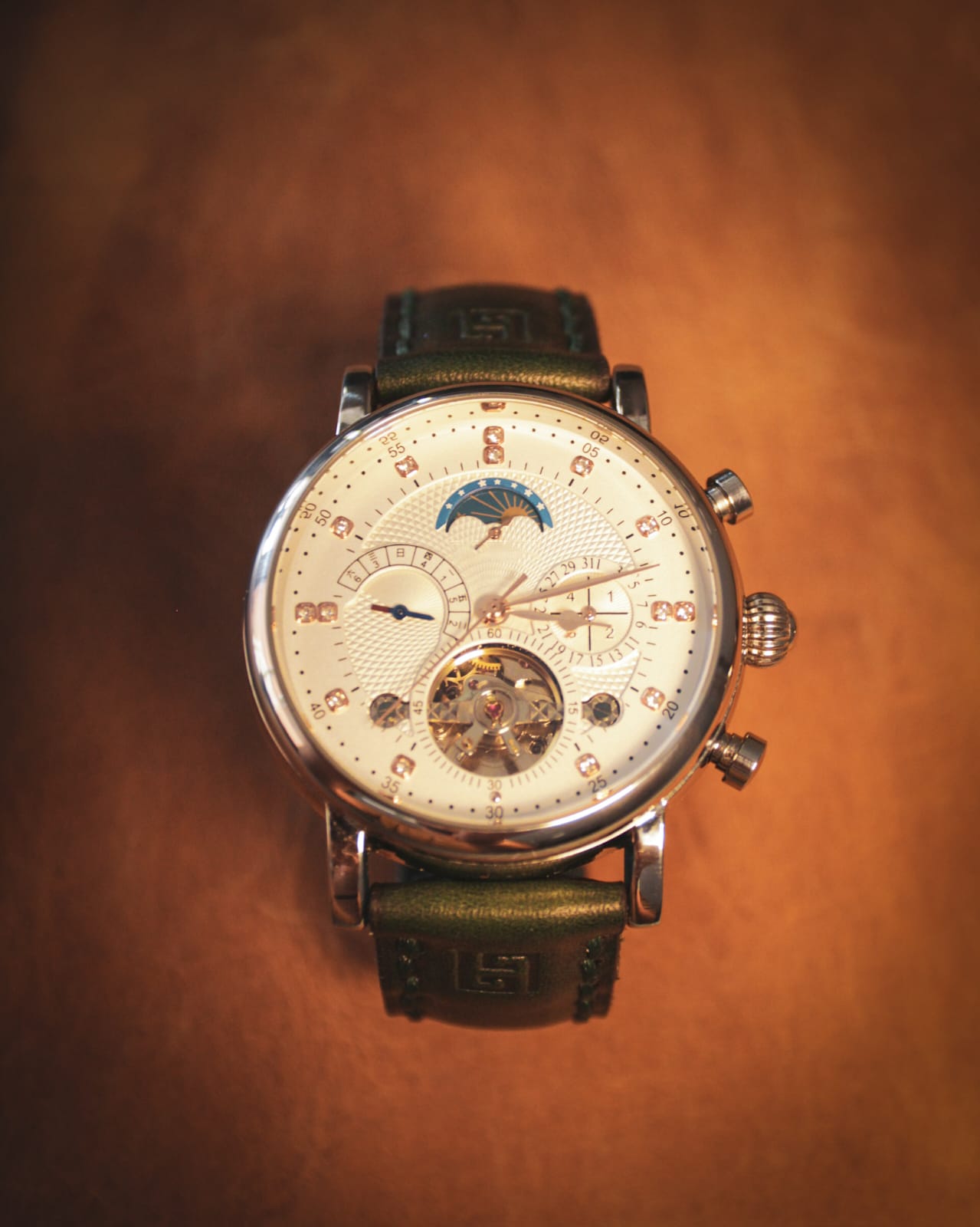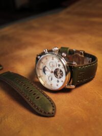 Φτιαγμένο από Full Grain δέρμα κορυφαίας ποιότητας, αυτό το λουράκι προσθέτει μια πινελιά εκλεπτυσμένης κομψότητας σε κάθε ρολόι, ενώ αποπνέει κλασικό και διαχρονικό στυλ. Το πλούσιο και μαλακό δέρμα προσαρμόζεται στον καρπό σας με τον καιρό, δημιουργώντας μια εξατομικευμένη εφαρμογή που ενισχύει τόσο την άνεση όσο και την πρακτικότητά του. Κάθε λουράκι αναπτύσσει μια μοναδική πατίνα, αφηγόντας μια ιστορία για κάθε σας στιγμή.
