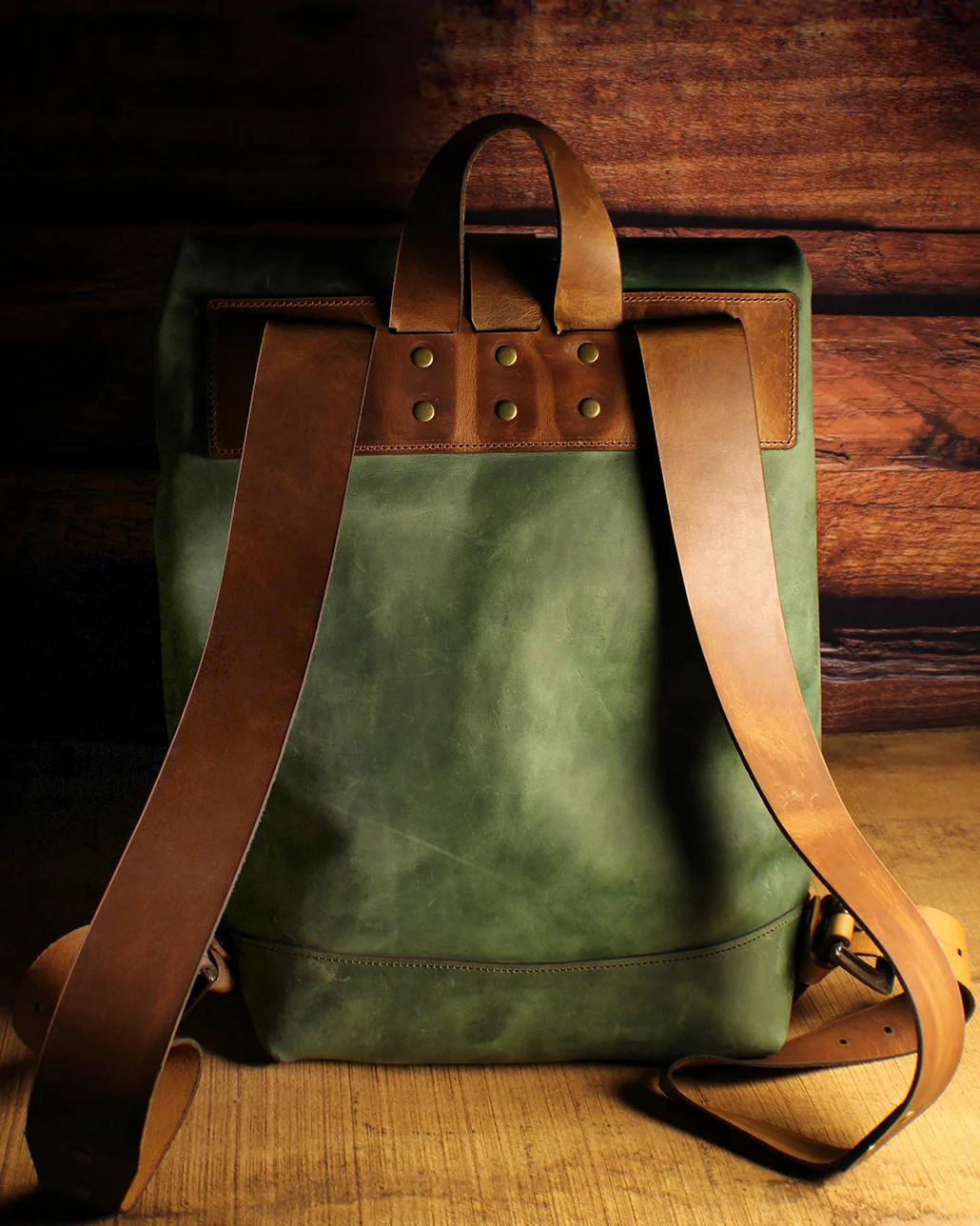 Φτιαγμένο από το πιο εκλεπτυσμένο Full Grain δέρμα, αυτό το σακίδιο αποπνέει την αυτοπεποίθηση και τη φιλοδοξία του χρήστη, παρουσιάζοντάς το ως ένα αξιόπιστο και δυναμικό αξεσουάρ. Είναι μια επένδυση στο στυλ και την ποιότητα που θα ωριμάσει με χάρη, αναπτύσσοντας μια μοναδική πατίνα που θα αφηγείται την κάθε μία ιστορία των περιπετειών σας. Ανθεκτική και λειτουργική, αυτή η τσάντα είναι φτιαγμένη για να αντέχει σε προκλήσεις.