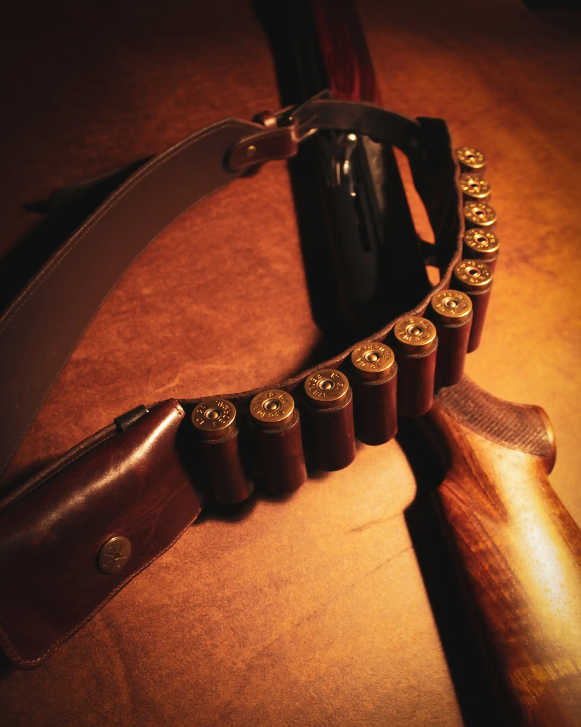 Χειροποίητο από Full Grain δέρμα κορυφαίας ποιότητας, αυτή η ζώνη έχει σχεδιαστεί για να κρατά τα φυσίγγιά σας με στυλ και ακρίβεια. Η στιβαρή κατασκευή της εξασφαλίζει ότι τα φυσίγγιά σας αποθηκεύονται με ασφάλεια, ενώ παράλληλα εκπέμπει μια διαχρονική γοητεία. Η ζώνη διαθέτει έναν προσεκτικά σχεδιασμένο εσωτερικό χώρο που διατηρεί τα φυσίγγια οργανωμένα και προσβάσιμα, είτε βρίσκεστε στην άγρια φύση, είτε στο σκοπευτήριο. Με την πάροδο του χρόνου, το δέρμα αναπτύσσει μια μοναδική πατίνα, αντανακλώντας τον χαρακτήρα των περιπετειών σας.